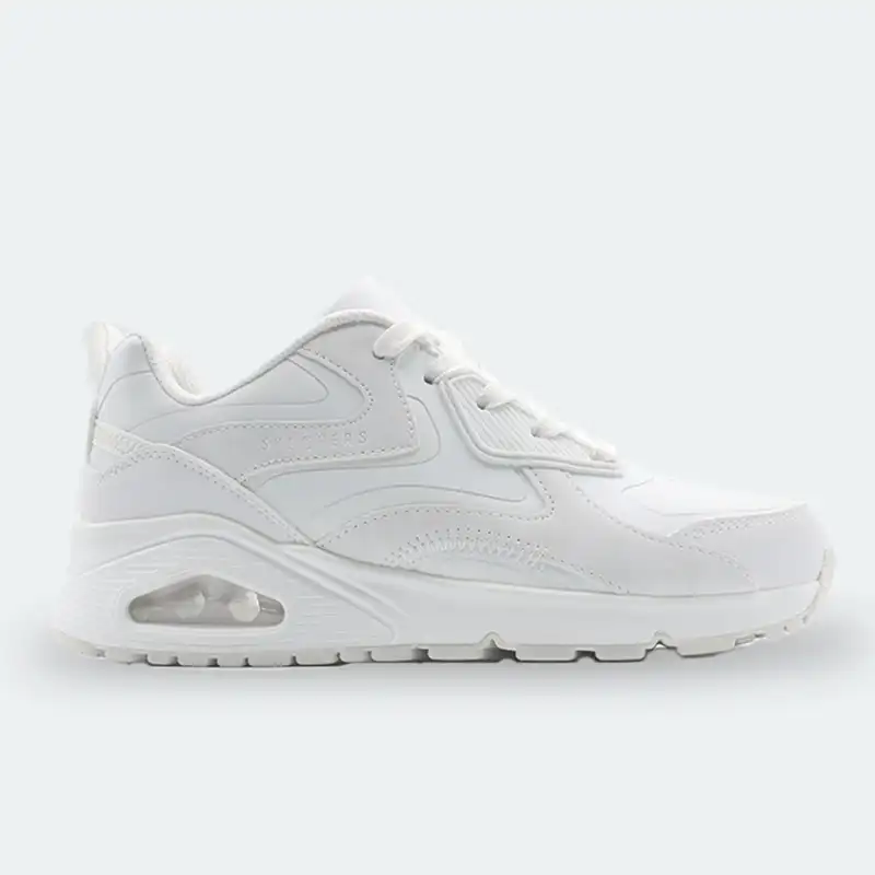 Mejora tu estilo con la Skechers Street Uno Gen1 Color Surge. Esta moderna zapatilla con cordones cuenta con una parte superior de durabuck sintético, bloques de color y piel duraleather, una cómoda plantilla Skechers Air Cooled Memory Foam y una media suela Skech Air con cámara de aire visible.