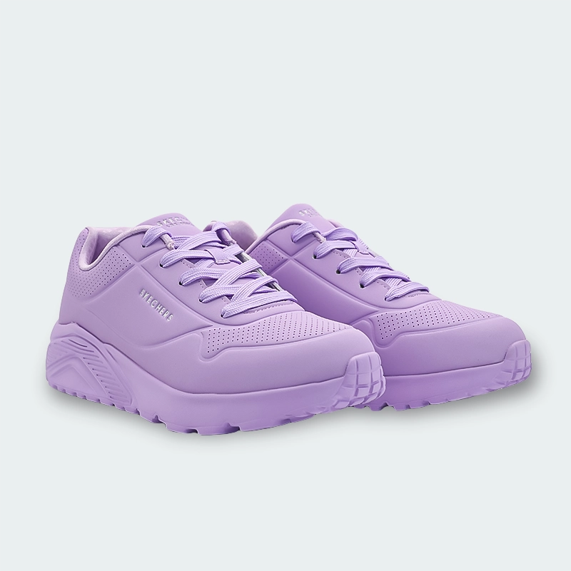 Súmate a la comodidad y la amortiguación de moda con las Skechers Street™ Uno Lite – Easy Zip. Estas zapatillas de moda con cordones cuentan con una parte superior de Durabuck monocromática con detalle de cierre de un cuarto, una plantilla Skechers Air-Cooled Memory Foam® y una entresuela acolchada con plataforma en cuña.