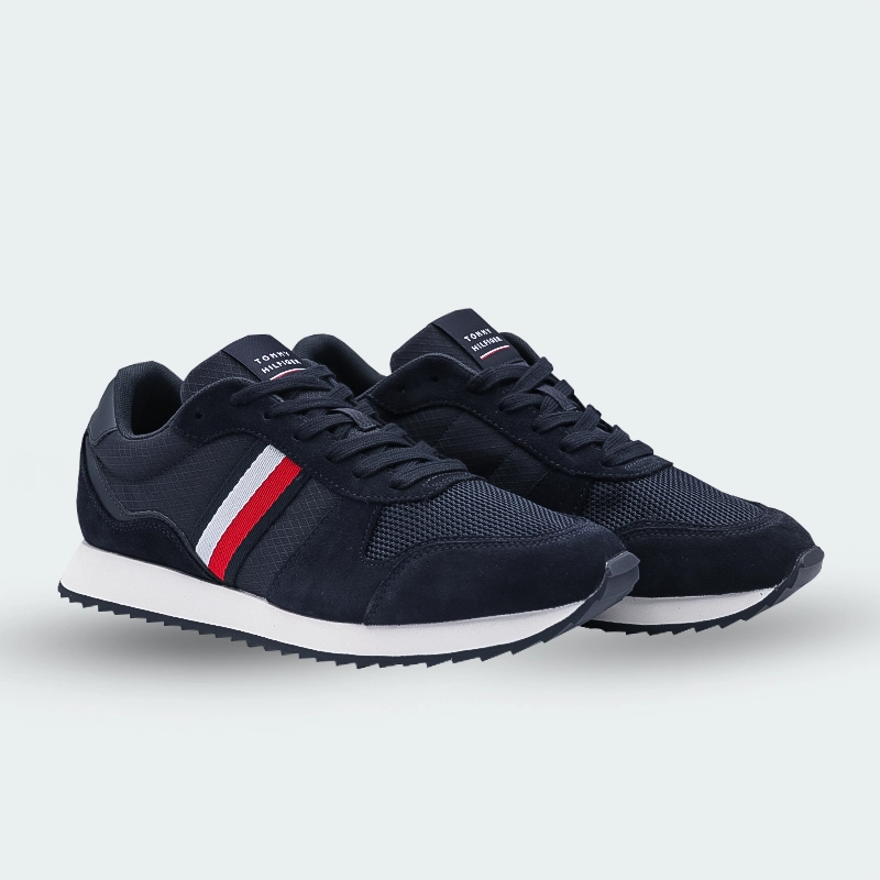 Presentamos Los Tenis Global Stripe Runner, con el diseño distintivo de las rayas globales en el lateral para un toque único. La suela en contraste añade un estilo deportivo, y la bandera de Tommy Hilfiger en la parte trasera aporta autenticidad. Con una fabricación híbrida para una ejecución premium en unas zapatillas casuales.