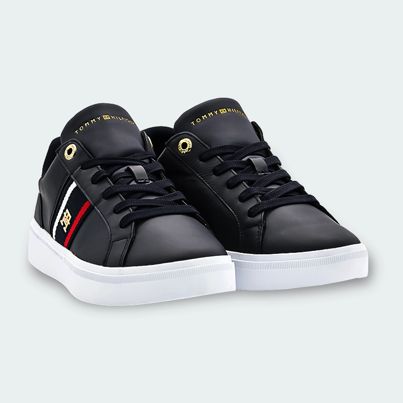 Estas zapatillas de piel, con detalles en los colores distintivos y en tono dorado, añaden un toque elegante a tu colección de calzado de sport.