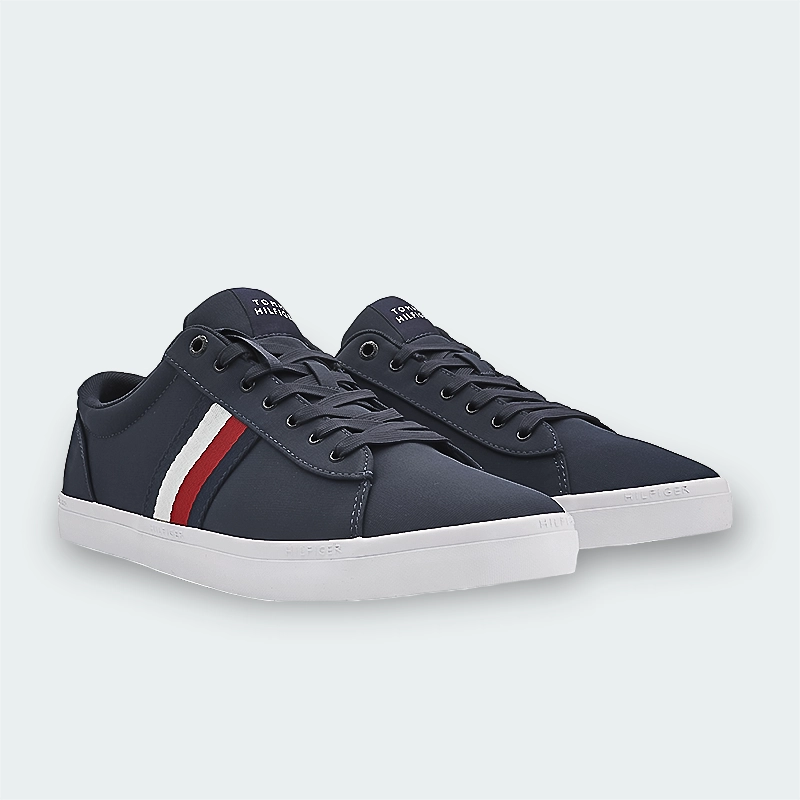 Zapatillas súper bonitas para hombre con bonitos detalles de Tommy Hilfiger en el lateral. El zapato tiene cordones en la parte delantera para que puedas ajustarlos a tus preferencias. El zapato tiene una plantilla agradable y suave, con un cojín adicional debajo del talón para una comodidad óptima. Además, la plantilla se puede quitar. La suela del zapato es buena y sólida, con un bonito patrón debajo.