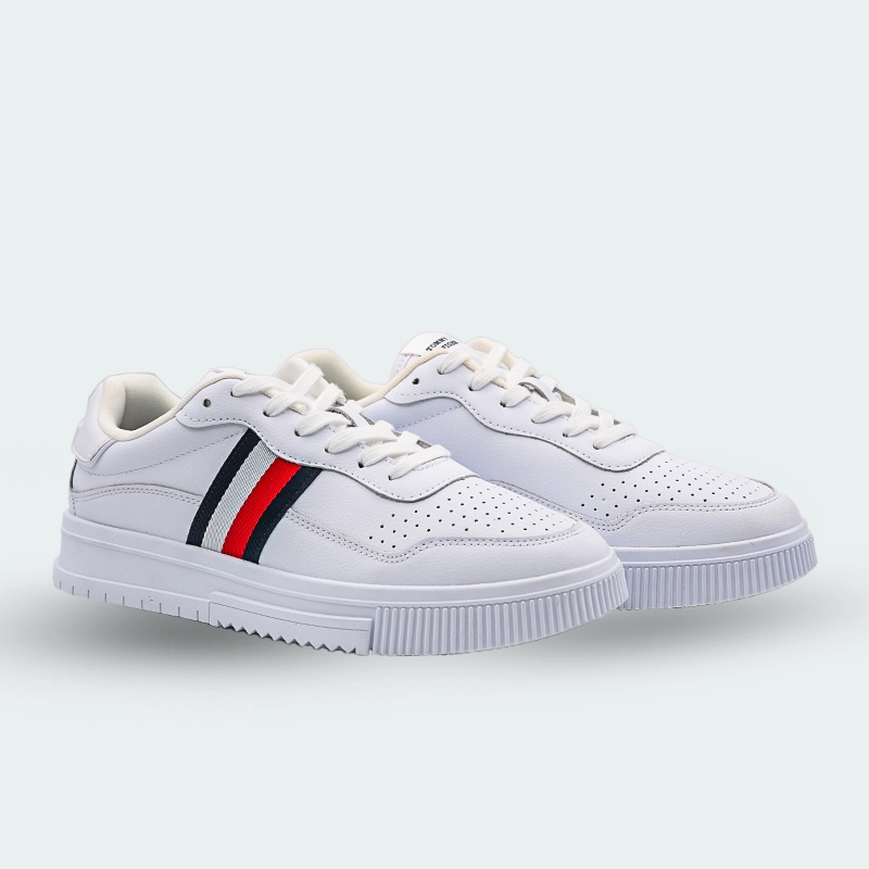 Deslumbra con los sneakers Tommy Hilfiger Supercup. Confeccionados en cuero blanco, ofrecen estilo y comodidad para tu día a día.