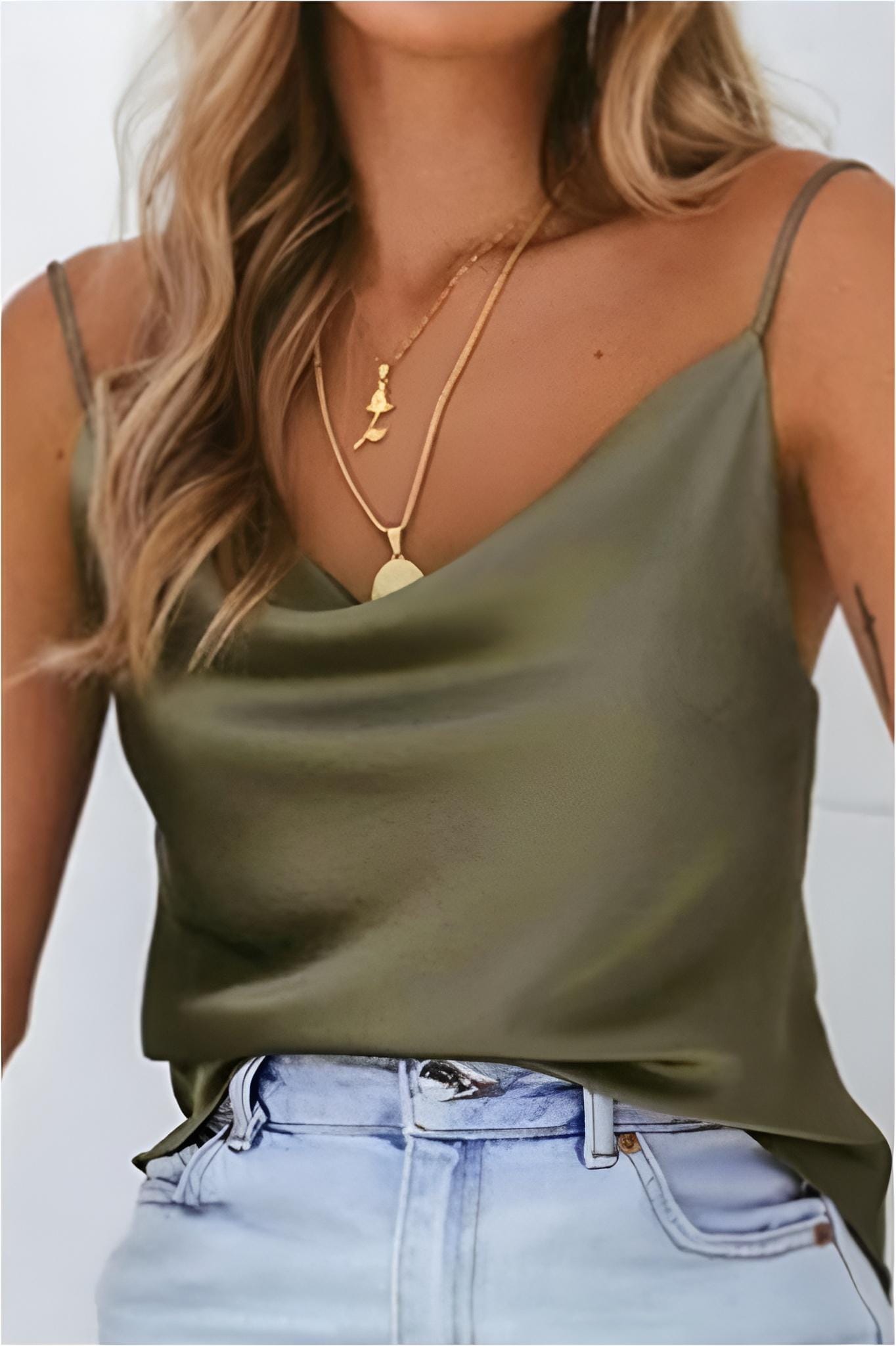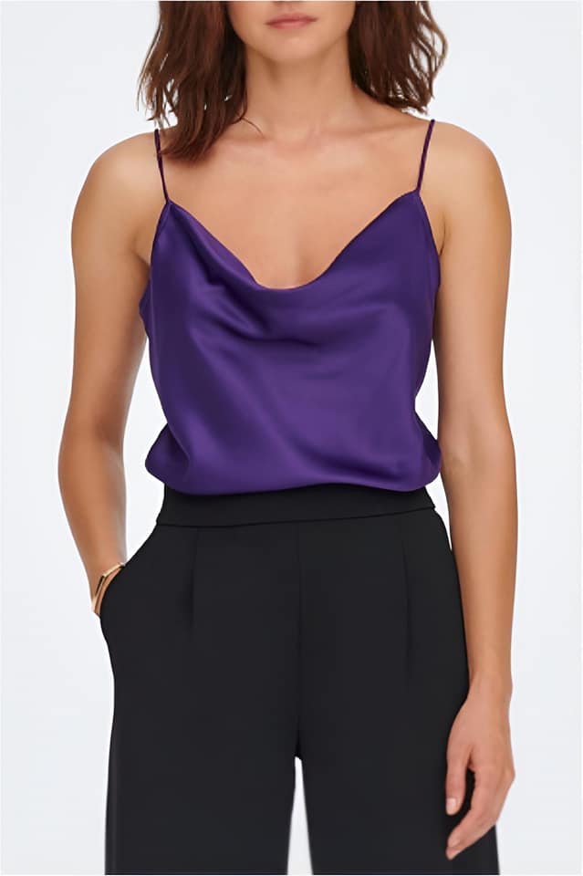 Este top se adapta a diferentes estilos y ocasiones, ya que puede combinarse fácilmente con pantalones, faldas, shorts o vaqueros. Ya sea para una cena elegante, una fiesta nocturna o una reunión de negocios, el top de mujer de tirantes de satén con cuello caído siempre será una elección acertada.