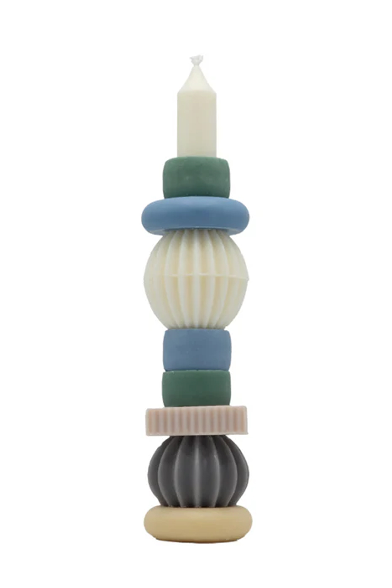 Vela decorativa de nueve piezas apilables en tonos frios.