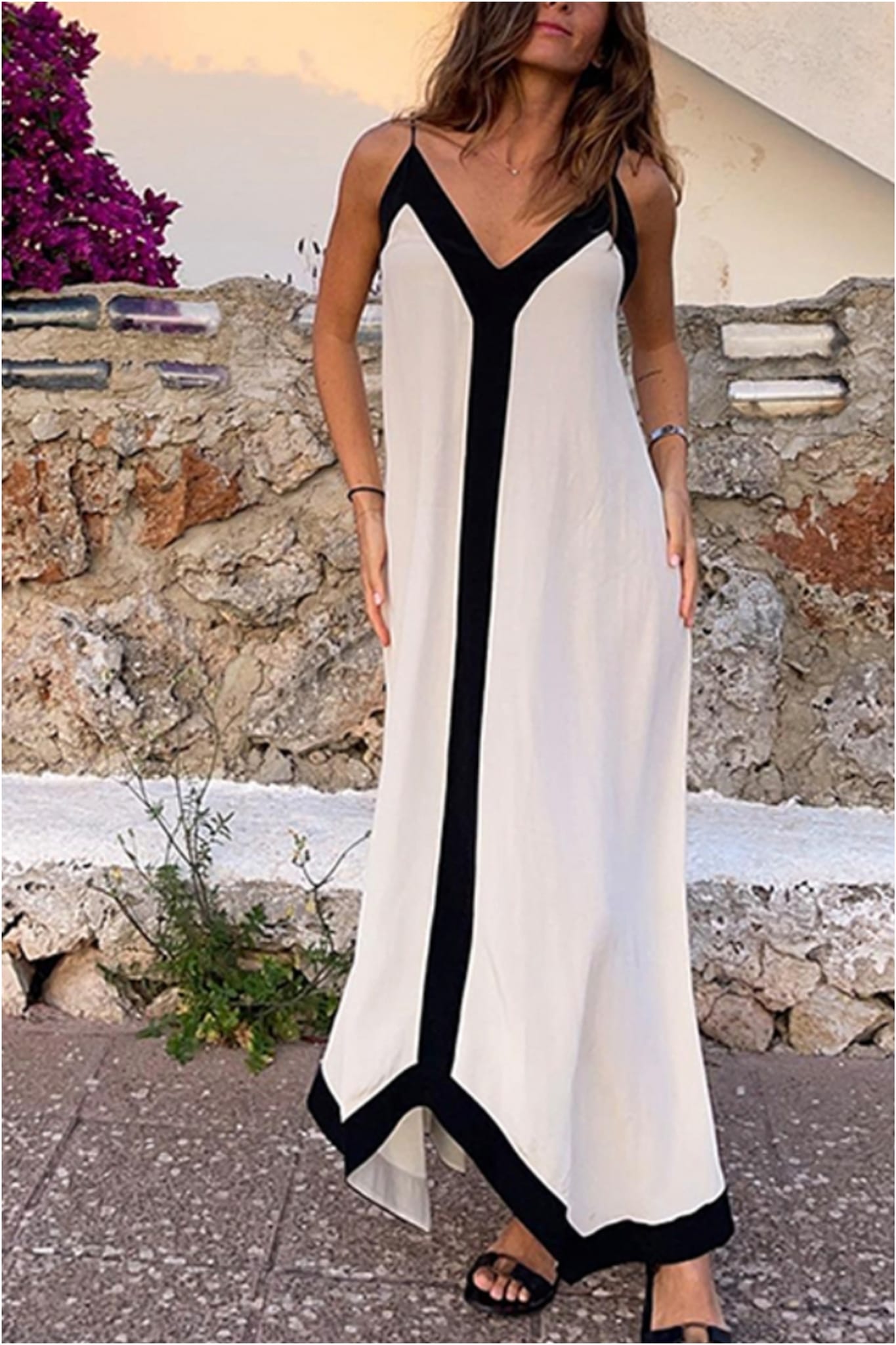 El vestido largo bicolor es una prenda que combina estilo y comodidad de manera excepcional. Con su diseño de tirantes, tejido liso y detalles de franjas de color, este vestido es una elección perfecta para diversas ocasiones, bodas, comuniones, bautizos y cenas.